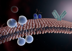 Representación de la bicapa lipídica de la membrana celular.