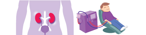 Muchos problemas renales pueden ser tratados por diálisis, donde una máquina actúa como un riñón.